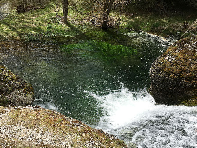 El espacio natural de La Fuentona es de esos lugares que tienen la capacidad de dejarte embobado y boquiabierto durante horas. Situada en el corazón de la provincia de Soria, La Fuentona es una laguna de origen kárstico que emerge del subsuelo y cuyas aguas, teñidas de intensos verdes y azules y completamente nítidas, permiten apreciar la fauna y flora existente a más de un metro de profundidad.